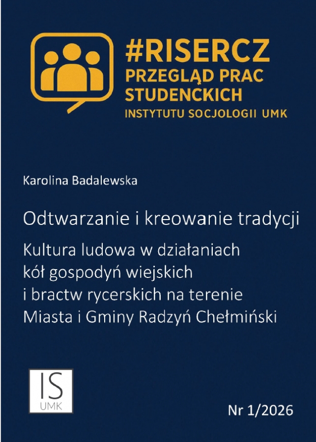 Przedstawiamy Wam pracę wyłonioną w drugiej edycji naboru publikacji w #Risercz. Komisja IS UMK zadecydowała tym razem, że opublikujemy pracę dyplomową naszej absolwentki p. Karoliny Badalewskiej. Praca pt. "Odtwarzanie i kreowanie tradycji" powstała pod opieką dr hab. Jacka Poniedziałka, prof. UMK.
